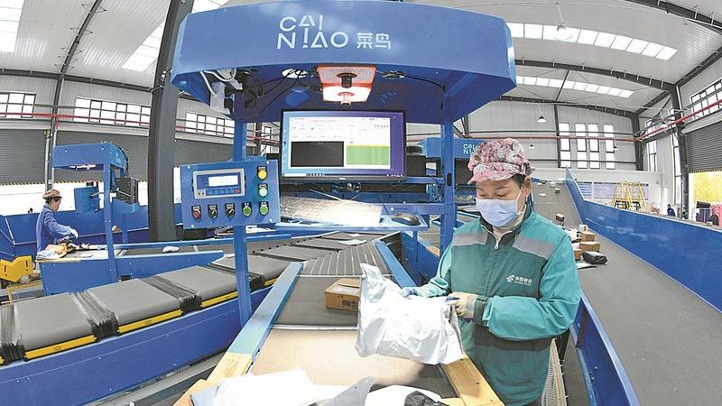保康县寄递物流共配中心:节后快递分拣忙