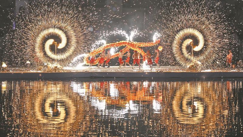 华侨城奇幻谷:“火龙钢花”映夜空