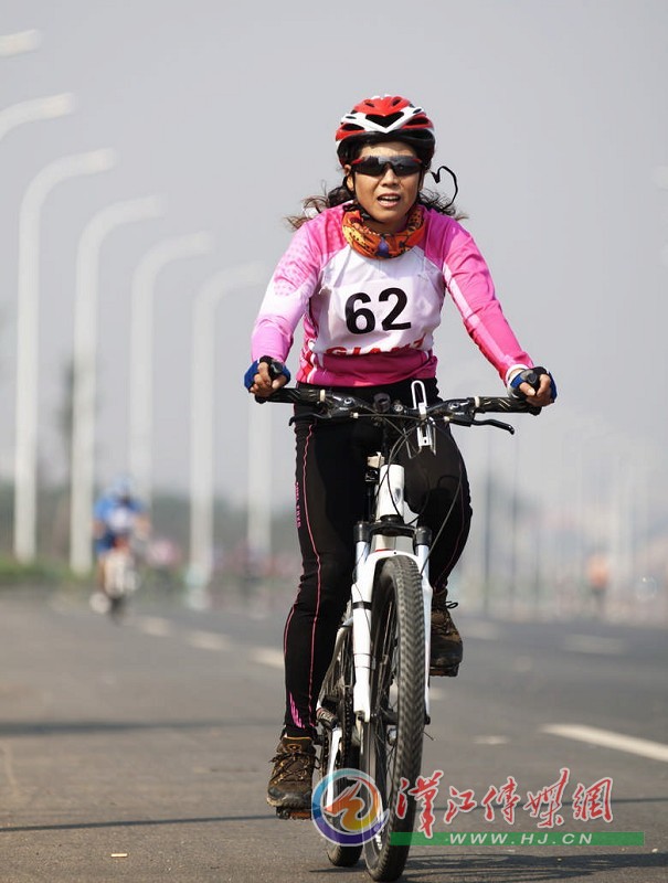 表情:在“深呼吸”自行车协会举办的山地自行车比赛上,一位落后的女选手奋起直追。 弹指间摄