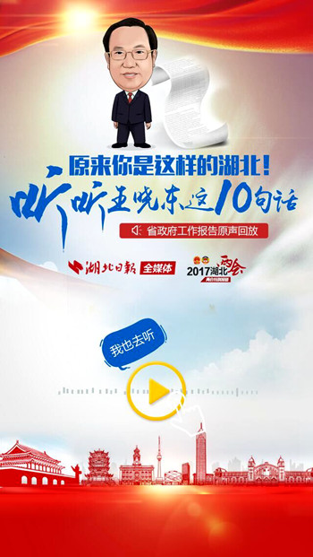 1月15日上午,湖北省第十二届人大五次会议在武昌洪山礼堂隆重开幕。代省长王晓东向大会作政府工作报告。报告分为2016年工作回顾、2017年工作重点、着力建设人民满意政府三个部分。快来听听王晓东同志的报告原声吧!