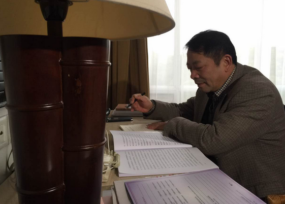 会前,陈委员在最后修改发言稿