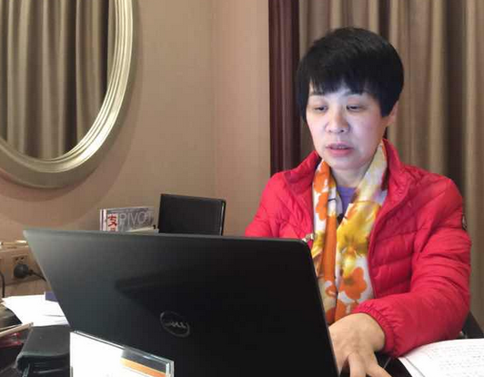 李燕萍委员在会议间隙打磨大会发言稿