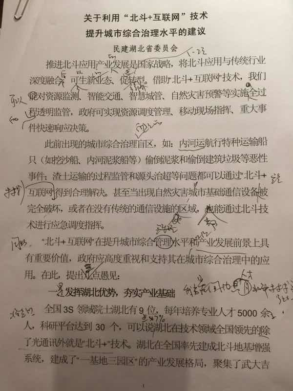 李燕萍委员在大会发言稿上标注圈重点