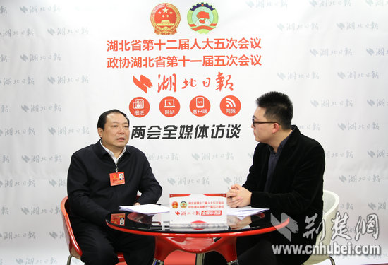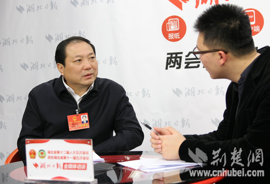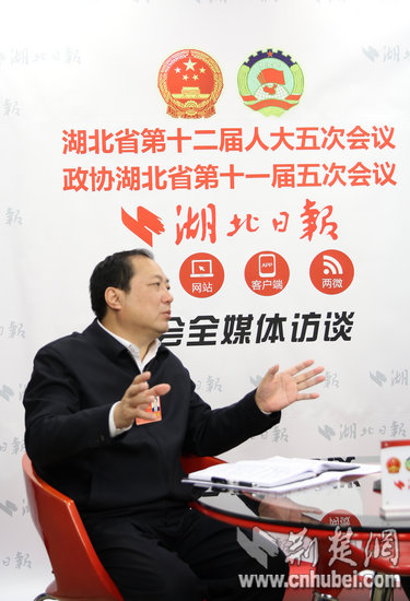 省人大代表、潜江市委书记胡功民做客湖北日报两会全媒体访谈室。记者刘申 摄