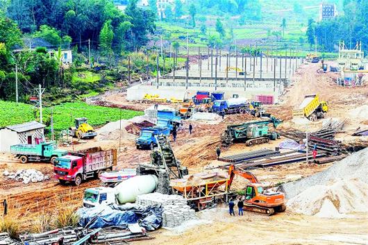 湖北日报讯 连日来,郑万高铁湖北巴东段工地,挖掘机、铲车、搅拌车、工程运输车川流不息,正在加紧建设3号混凝土拌和站。郑万高铁湖北巴东段经溪丘湾、平阳坝,跨越神农溪、沿渡河,最后经香树湾隧道进入重庆,全长33.4公里,计划总工期66个月。(记者 梅涛 视界网 边文海 摄)