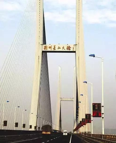 荆州长江大桥位于湖北省长江中游的荆江河段,与318国道、宜黄高速公路、襄荆高速公路、荆常高速公路相连,是207国道跨越长河的咽喉工程。全长4397.5米,桥面宽24.5米,双向四车道。 2002年10月1日正式通车。