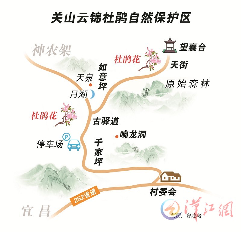 一路走来,记者发现,这里的云锦杜鹃是一树一树地独立开放。它们分布在山麓阴面,原来杜鹃喜寒冷。越往海拔高的地方走,气温越低,花朵开放的时间也越晚。常常山下的花开了,山上的花还有一个月才能开。“树龄在500年以上的古树可以开出千朵花,颜色呈粉红色或白色,杜鹃刚盛开时颜色是火红,再后来是紫红,快凋谢的时候成了粉白。”向导、合作村村民徐正芝介绍,每年7月杜鹃开始孕育花蕾,次年4月中旬盛开,因此云锦杜鹃的花朵不似其他杜鹃花那般小,它的花朵硕大,因其花朵硕大如碗,灿若云霞,故得名“云锦杜鹃”。