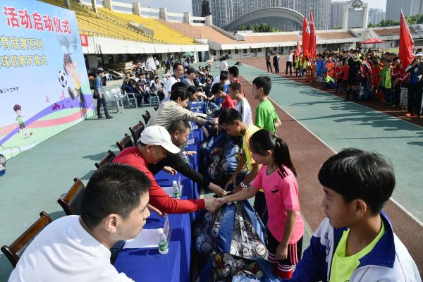 启动仪式上开展了“足球器材进课堂”活动,向市城区小学生足球联赛26所参赛学校集中赠送了足球器材。市文体新广局副局长李月敏、市政府教育督导室副主任朱启龙出席并讲话。