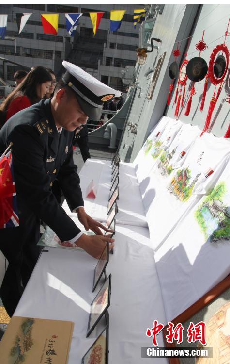 10月3日,中国海军第26批护航舰队抵达英国伦敦访问,这是中国海军舰队首次到访英国首都伦敦。图为扬州号护卫舰上展示出官兵们制作的手工艺品。 中新社记者 张平 摄