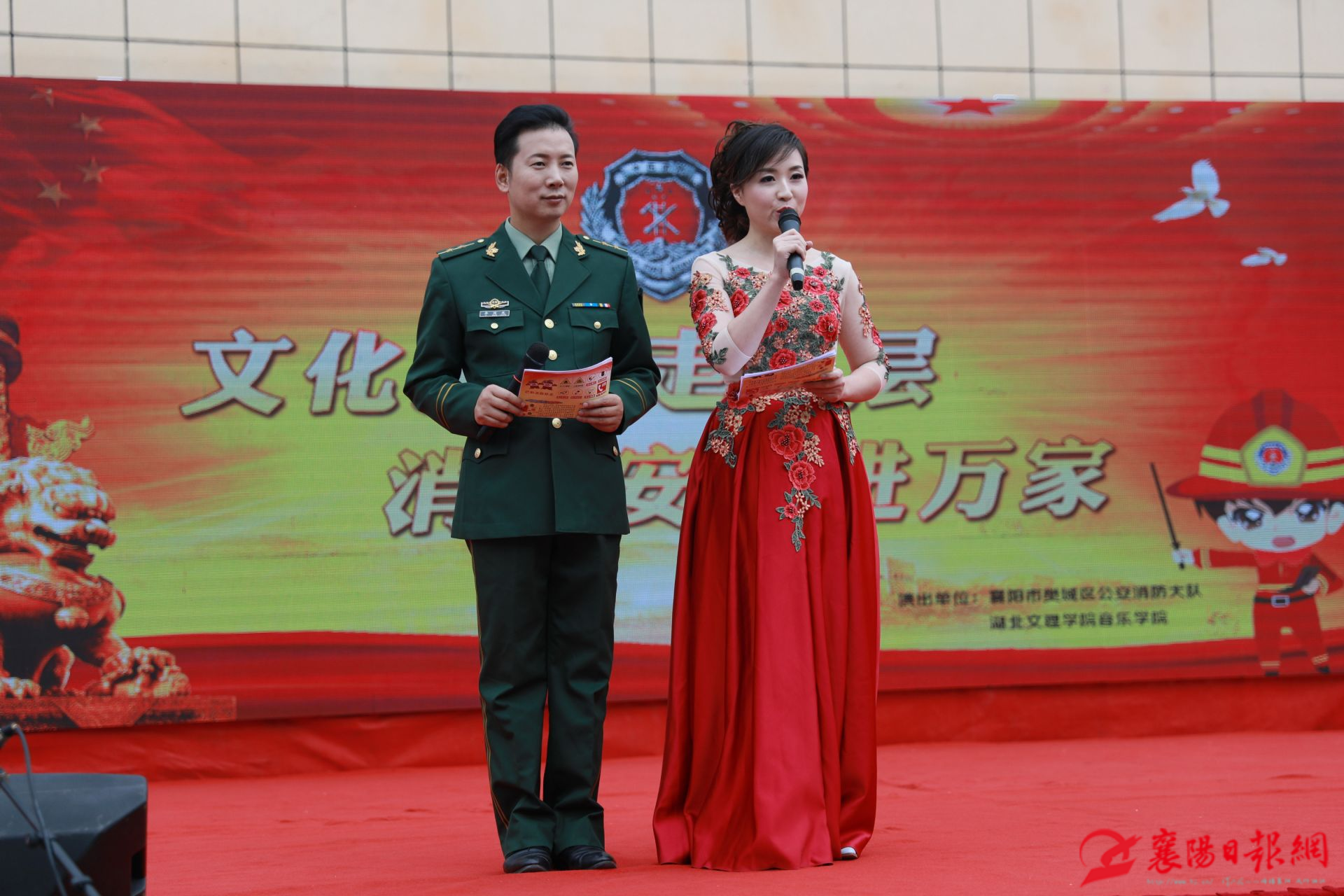 襄阳日报网讯【通讯员张岩岩 全媒体见习记者龚良杰 马雨帆】为积极推动“关注消防 平安你我”“119”消防主题宣传活动,在全国首个“119”消防宣传月到来之际,11月1日下午,襄阳樊城消防大队联合湖北文理学院音乐学院师生,共同举办“文化惠民走基层 消防安全进万家 ”文艺汇演活动。