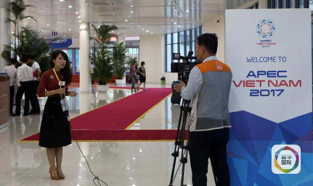 11月5日,在越南岘港,媒体记者在亚太经合组织领导人会议周国际媒体中心进行报道。新华社记者李鹏摄