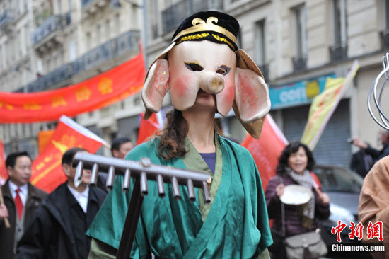 法国巴黎唐人街的春节彩妆游行,这位黑人小哥,是“本色出演”啊,围观群众一片叫好!但包大人呐,您额头上的logo去哪儿了?