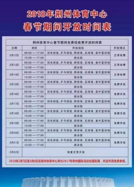 春节期间,荆州体育中心六大场馆将免费开放