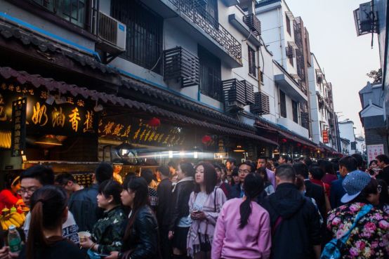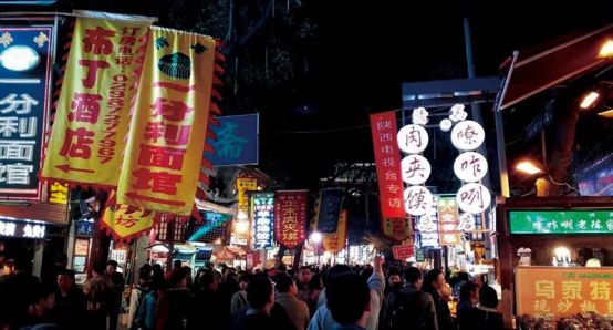 是武汉著名的“宵夜一条街”,吉庆街夜市大排挡宽十几米,每到晚上,它便展现出武汉“宵夜文化”的独特魅力,卖花的、卖唱的、拉琴的、吃饭的、服务的……几百个台位挤得满满当当,热闹非凡。