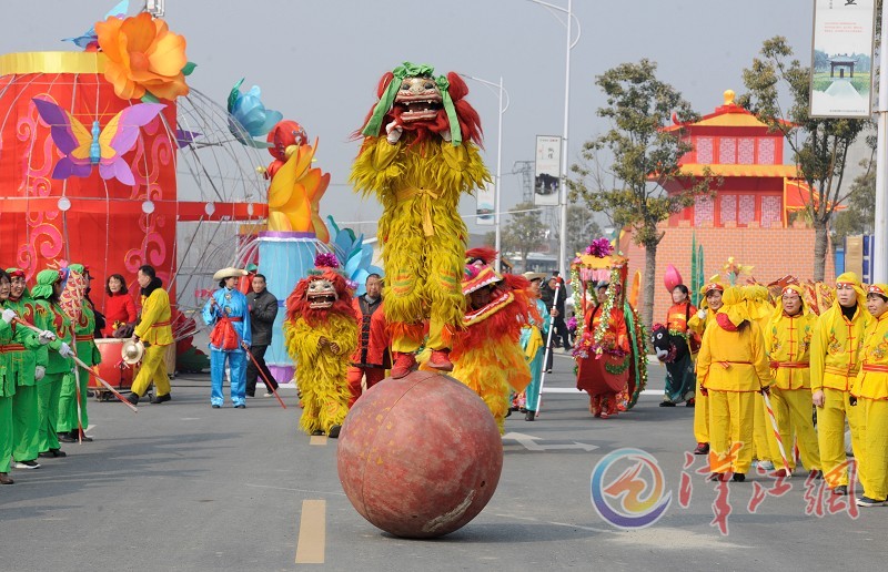 舞狮闹春贺新年。全媒体记者安富斌摄