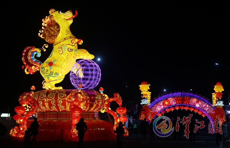 2月20日晚,人们在隆中首届大型民俗文化庙会观赏花灯。 全媒体记者 王虎 摄