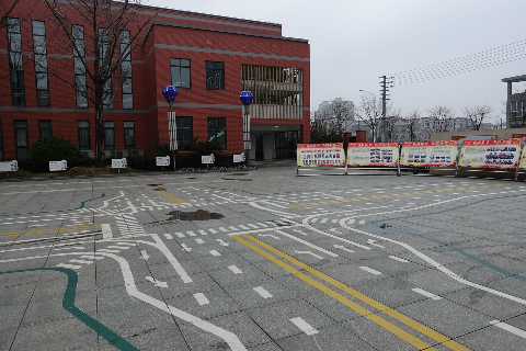 文明交通进校园,宿迁市实验小学内的微缩道路标线。