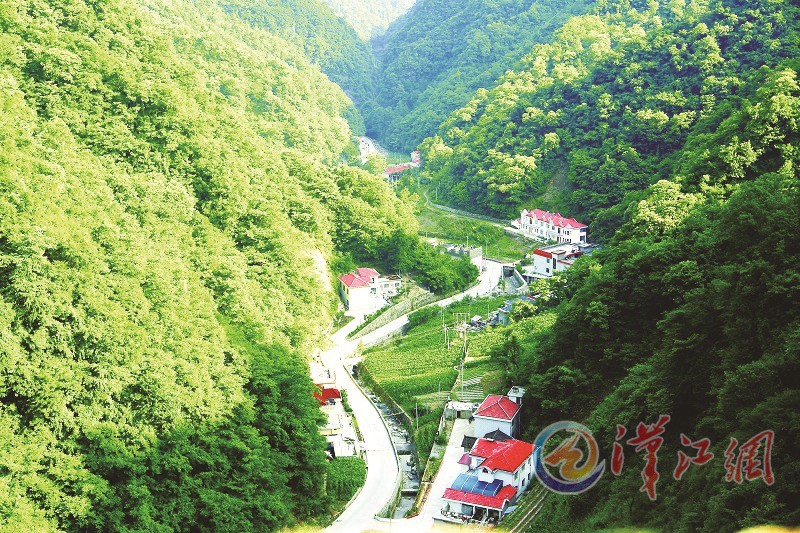 从市区出发,在逶迤的山路间盘旋,峰回路转处,浮现出村庄的鸟瞰图:青山连绵,云雾环绕,葱葱郁郁的山谷间,白墙红瓦的小别墅鳞次栉比,给满眼苍翠的山野添上几抹鲜红;蜿蜒曲折的沥青路如丝带般在崇山峻岭中飘扬,从眼前向大山深处延伸,若隐若现。