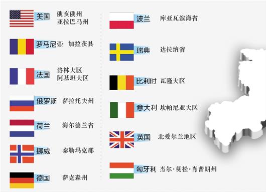 细数与湖北结好的40个国家,其中以美国、法国的“老友”居多,分别有10对和6对。