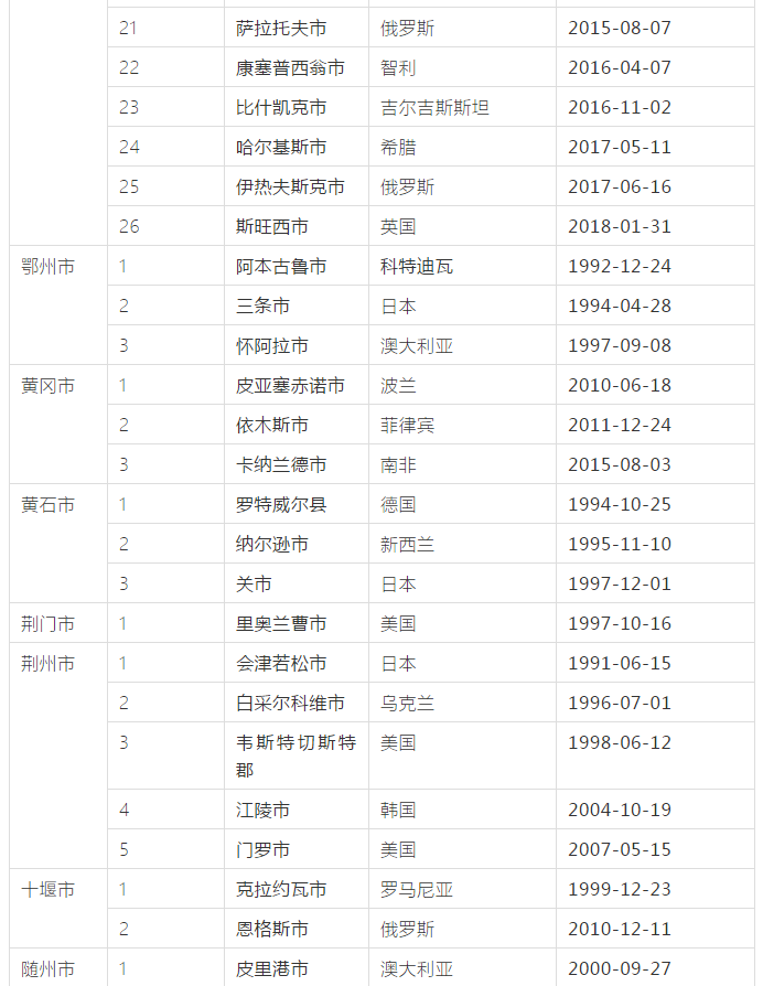 上述94对友好城市关系,属于修成正果领取合法“结婚证”的。除此之外,湖北还结成了200多对友好交流关系城市,也就是正在“谈恋爱”或已经“订婚”的。