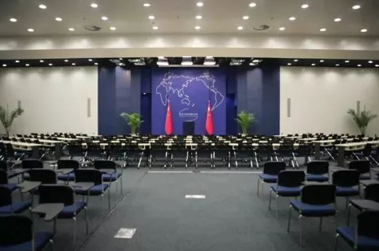 蓝厅的大名是外交部新闻发布厅,是外交部例行记者会、中外媒体吹风会、蓝厅论坛等重要活动举办的地方。