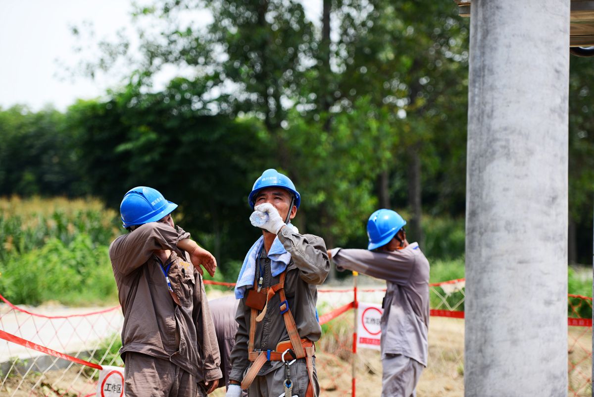 7月20日,老河口市供电公司员工经过一上午的紧张奋战,完成了仙人渡马岗村10千伏鹤岗线6号台区电缆搭火工程,为该镇新建的香茹、灵芝种植基地夏季用电提供了保障。完工后,员工们用矿泉水和藿香正气水解暑。
