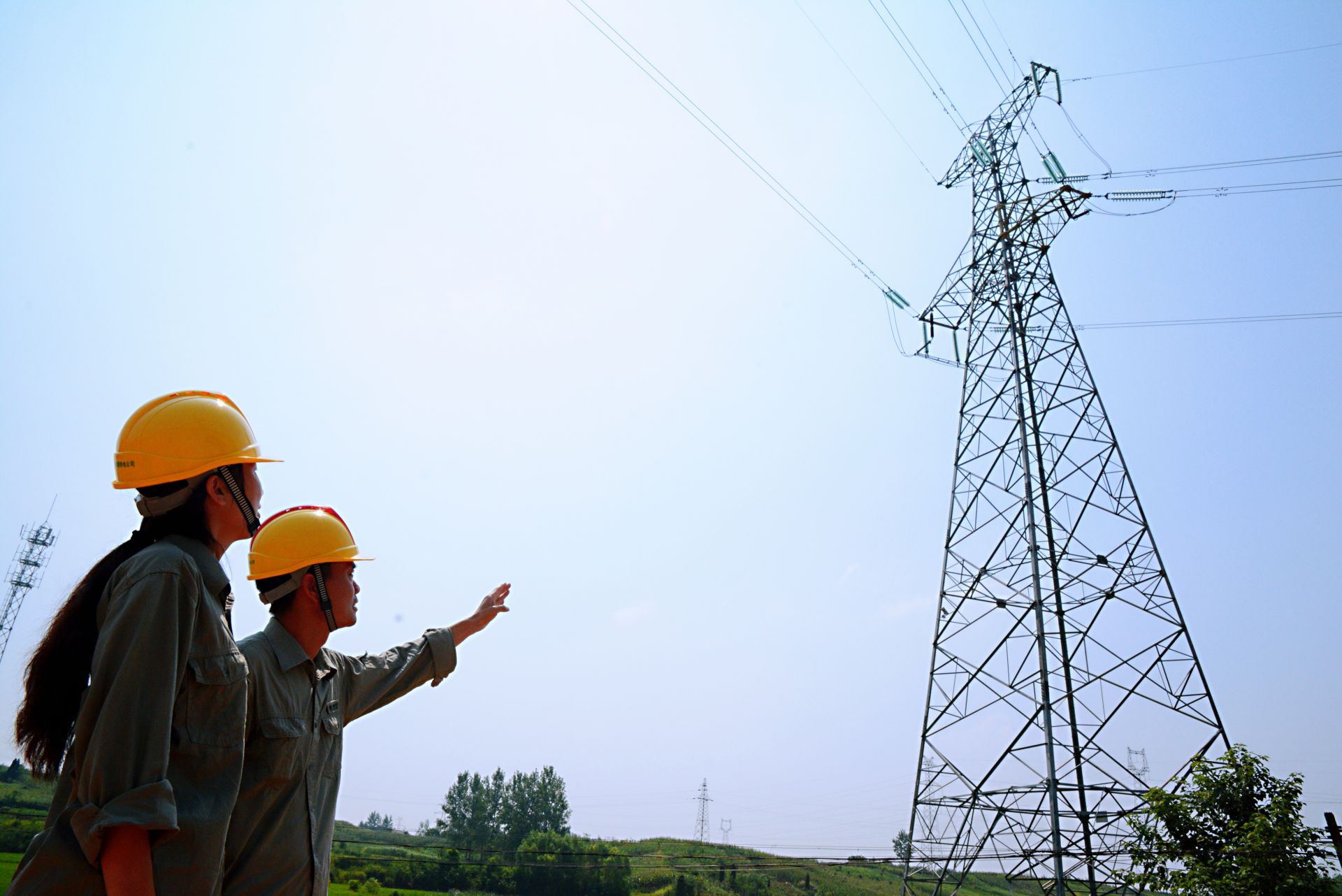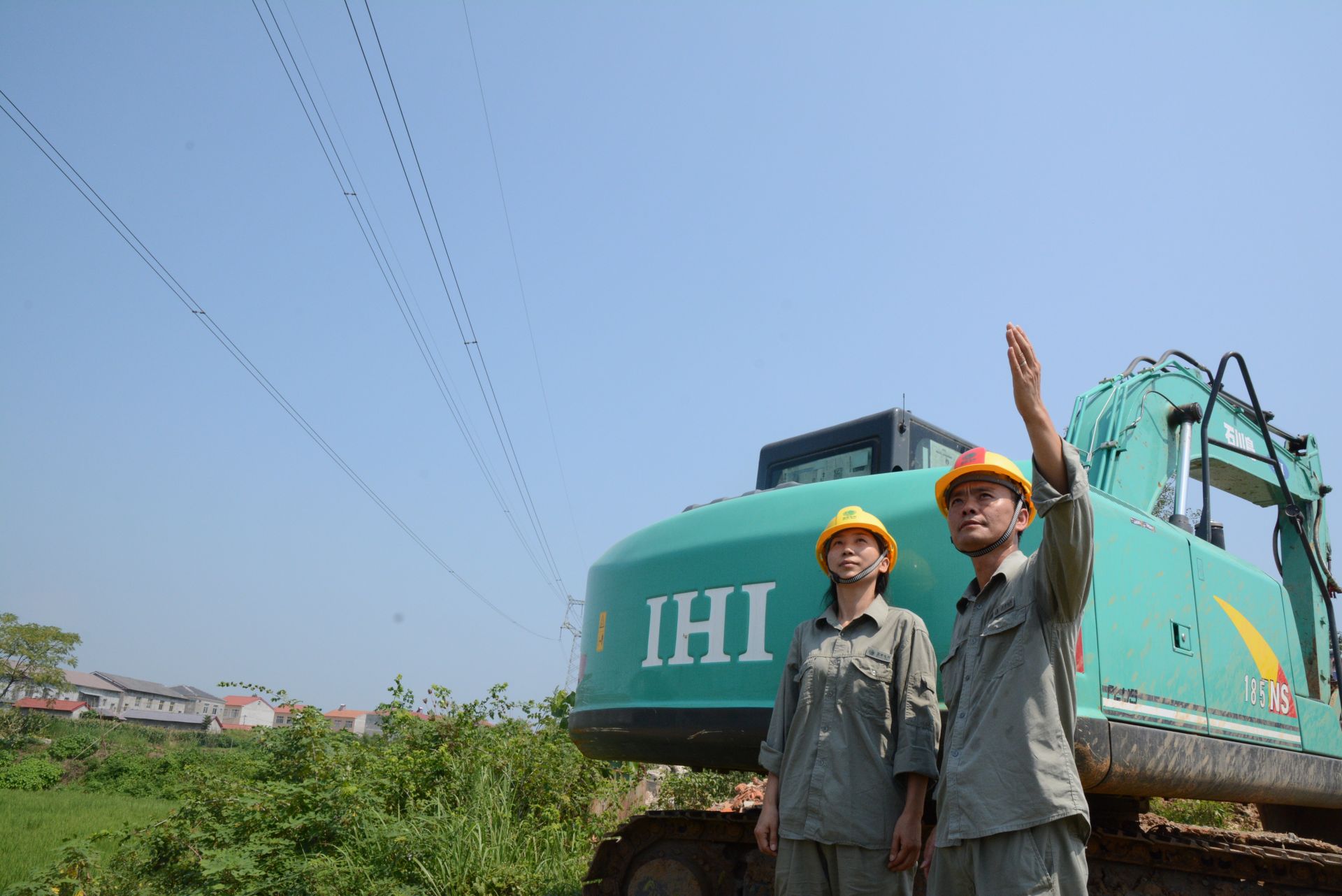 7月22日,国网襄阳供电公司检修分公司员工在220千伏水翁线#002-#003线下郑万高铁施工现场督导防外破工作。