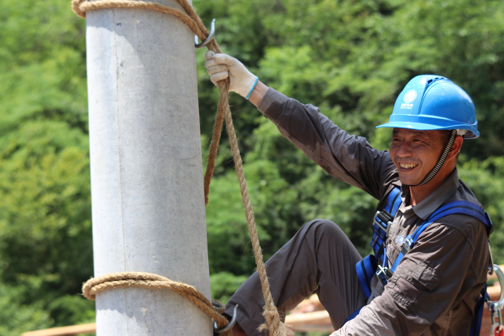 7月19日,在位于湖北保康县寺坪镇金堂村扶贫安置点建设工地,来自国网保康县供电公司的施工人员正在挥汗如雨为安置点架设380伏线路,确保扶贫户按期入住,用电无忧。