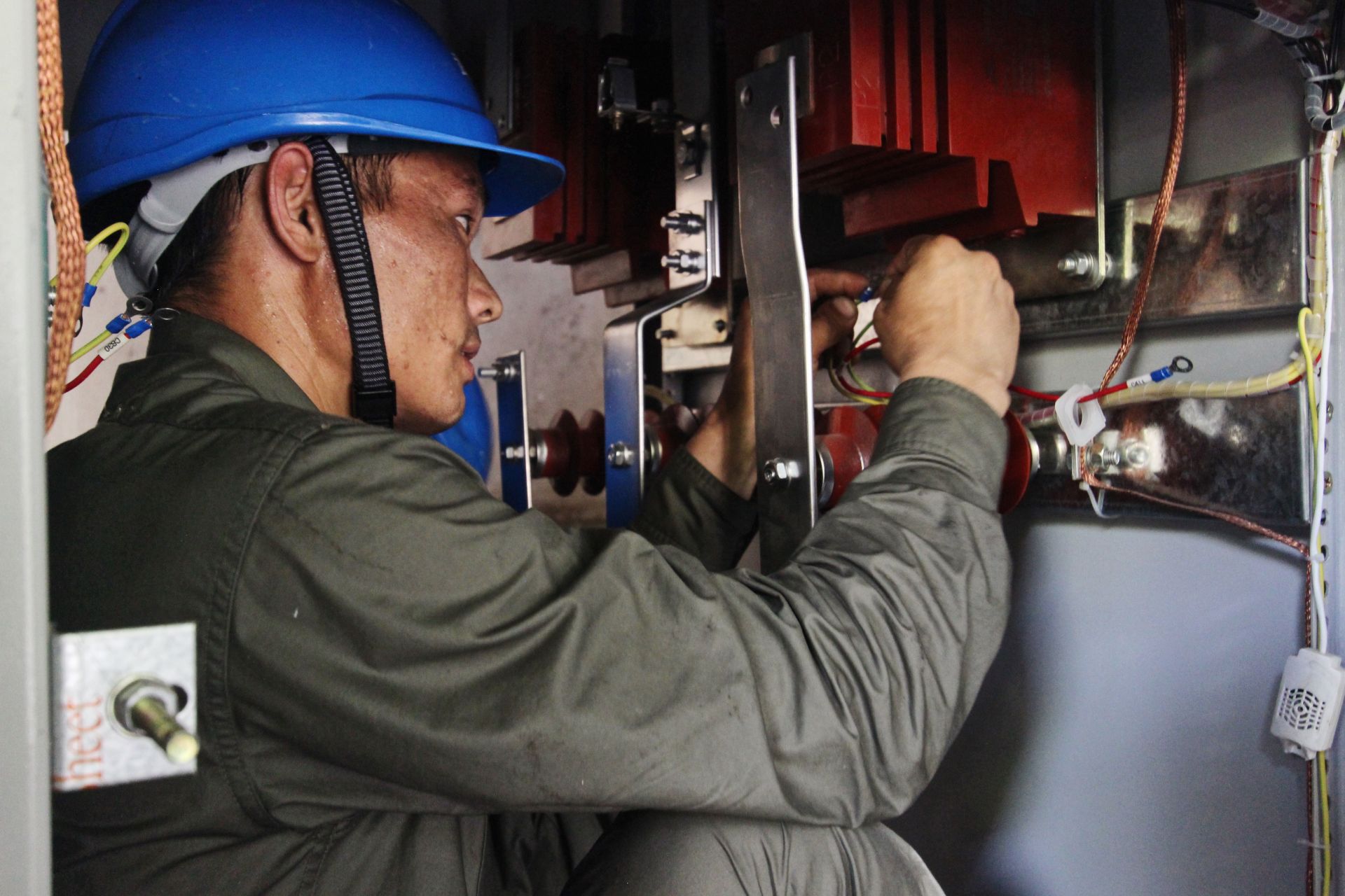 7月23日,国网襄阳供电公司客户服务中心计量室员工在襄阳市东西轴线(樊城段)道路项目现场安装计量装置。