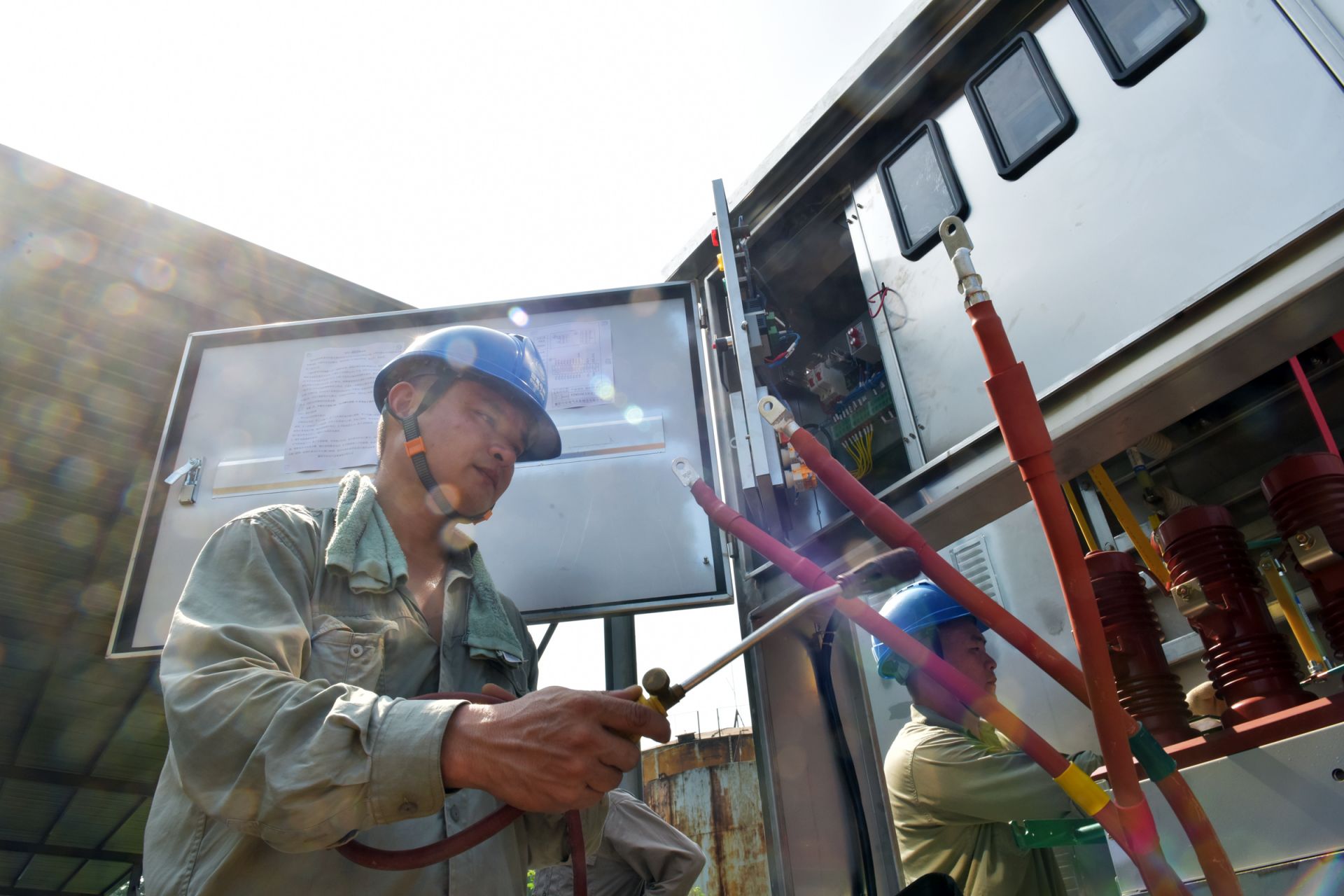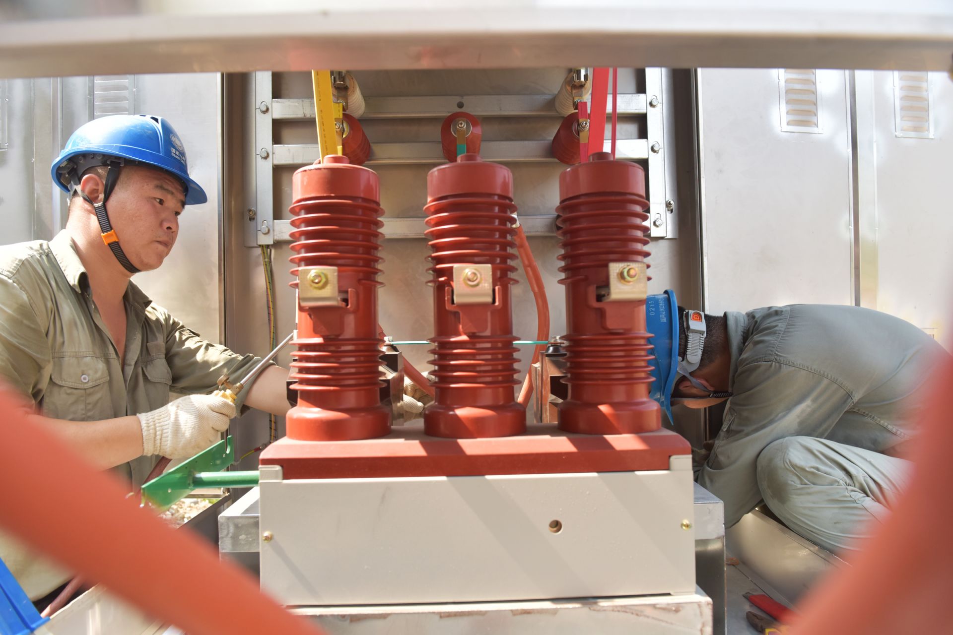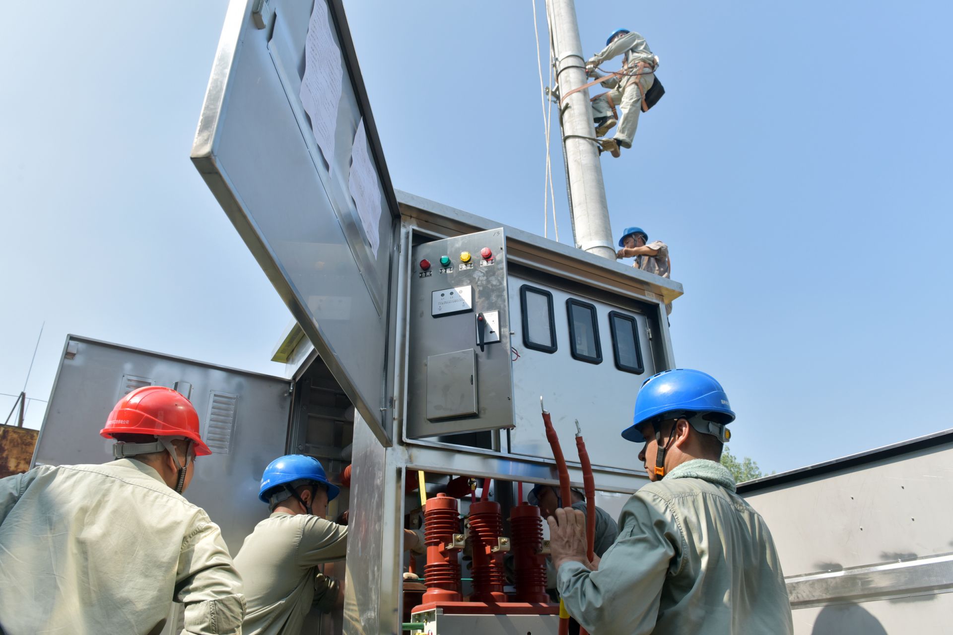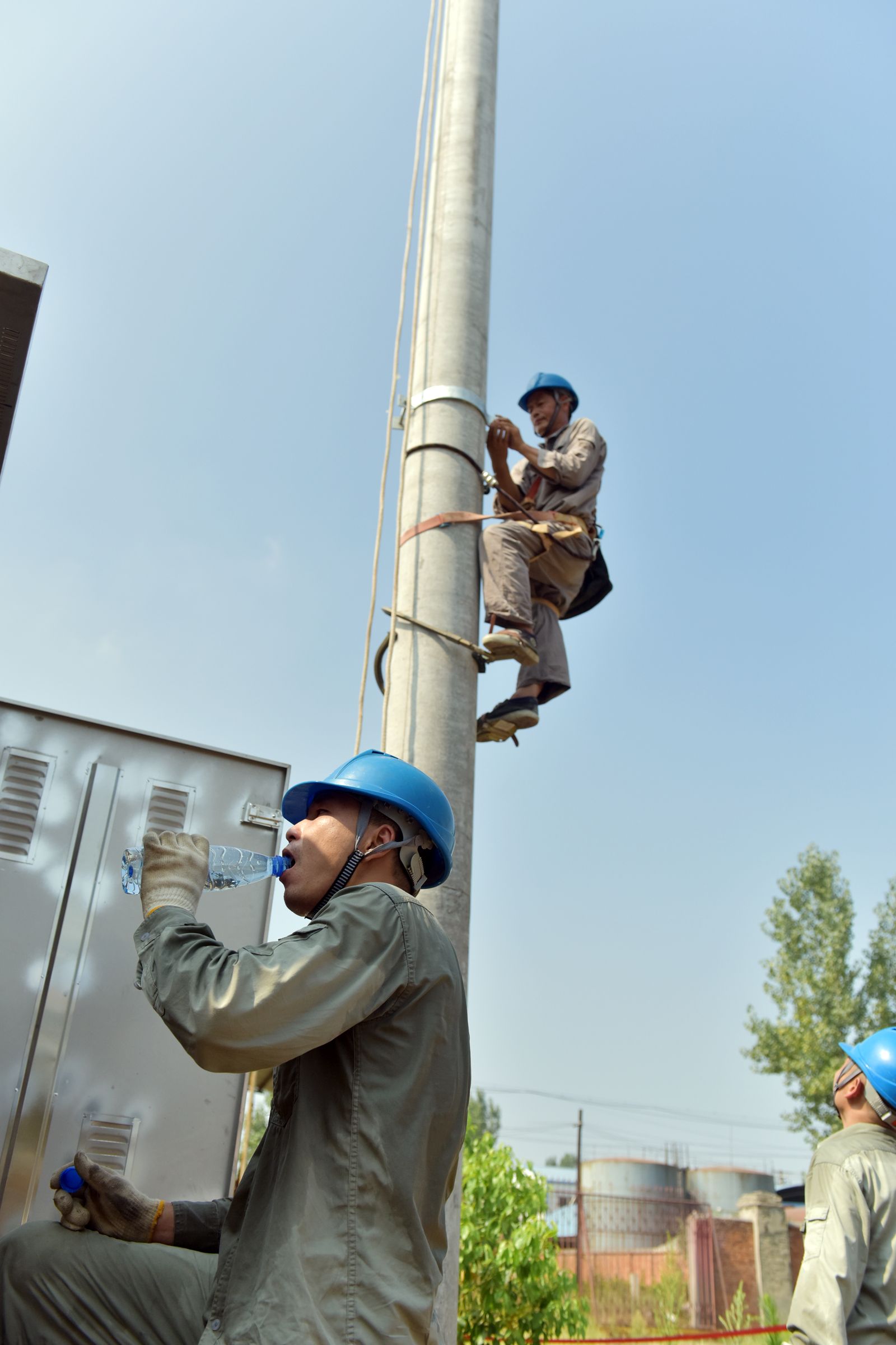 7月23日,湖北襄阳地区最高气温突破37摄氏度。在中铁十一局物资周转中心,来自国网湖北老河口市供电公司的施工人员采取地面作业与电杆作用同步进行的方式,为该中心新增配变安装高压计量柜。和太阳肩并肩,才知道“烧烤”的感觉。施工人员肩并肩地协同作业,更加快了工作效率和送电时间。