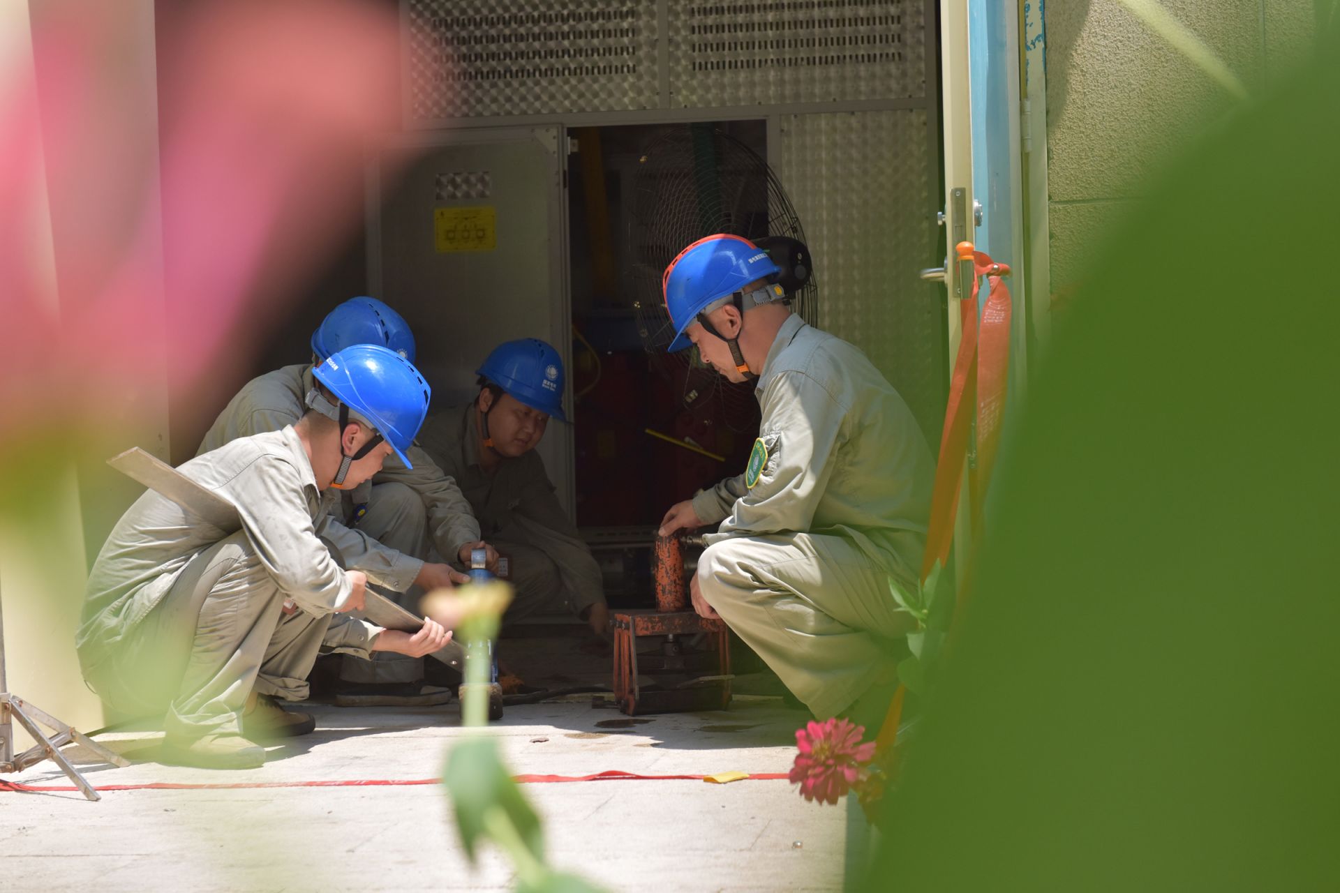 7月23日,襄阳供电公司泽能分公司的施工人员在10千伏紫园专线配电工程施工现场制作低压铜排。