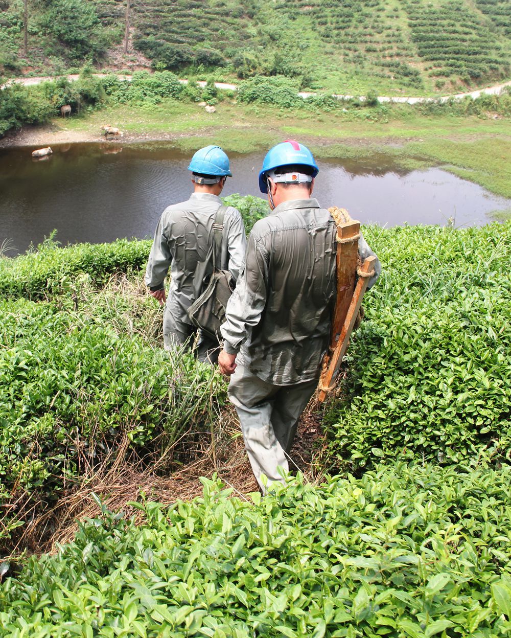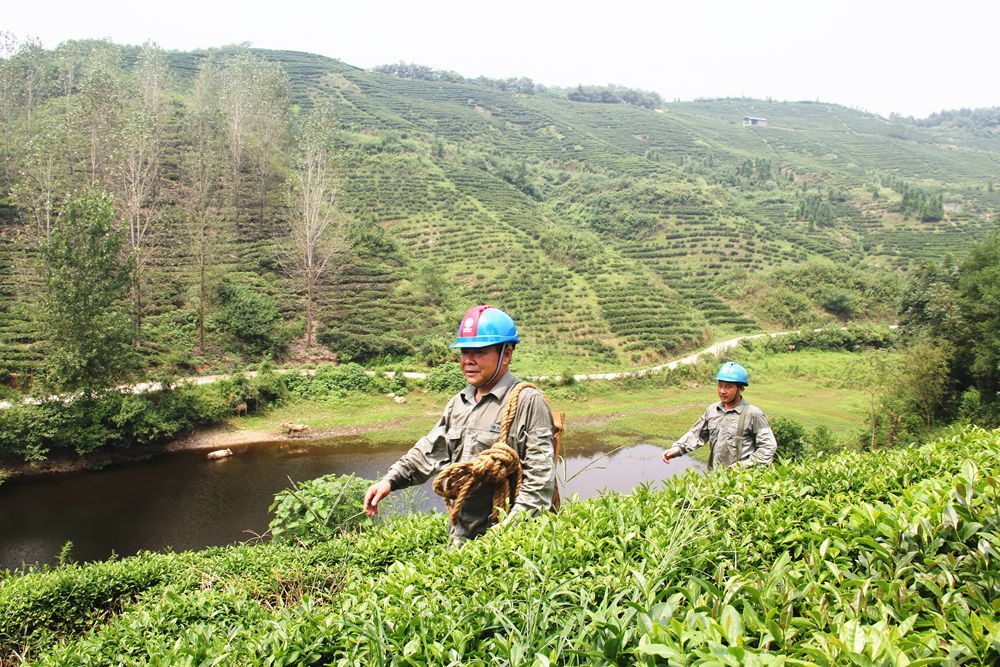 8月6日,谷城县供电公司员工在10千伏闻59田河线巡视线路。针对连日来的桑拿天气,该公司加大属地化线路管理和140条10千伏线路巡视频率,力求自己多流汗,客户享清凉。马明刚摄
