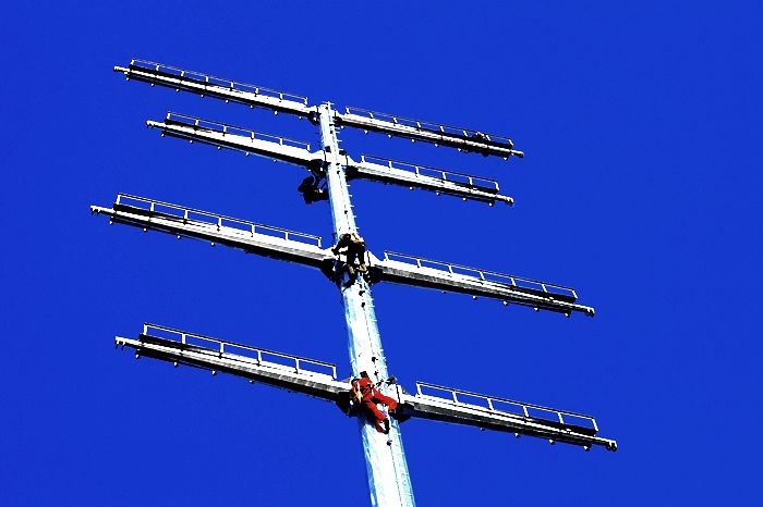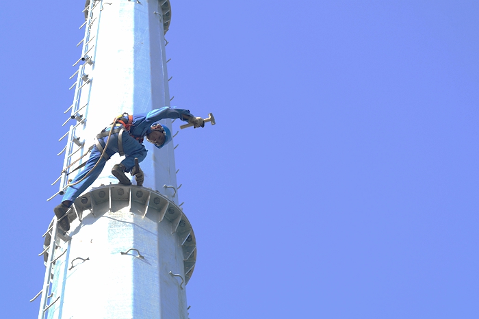 2017年8月3日至8月10日,襄阳电力在樊城区宇航路上冒着高温酷暑架设高压电线。