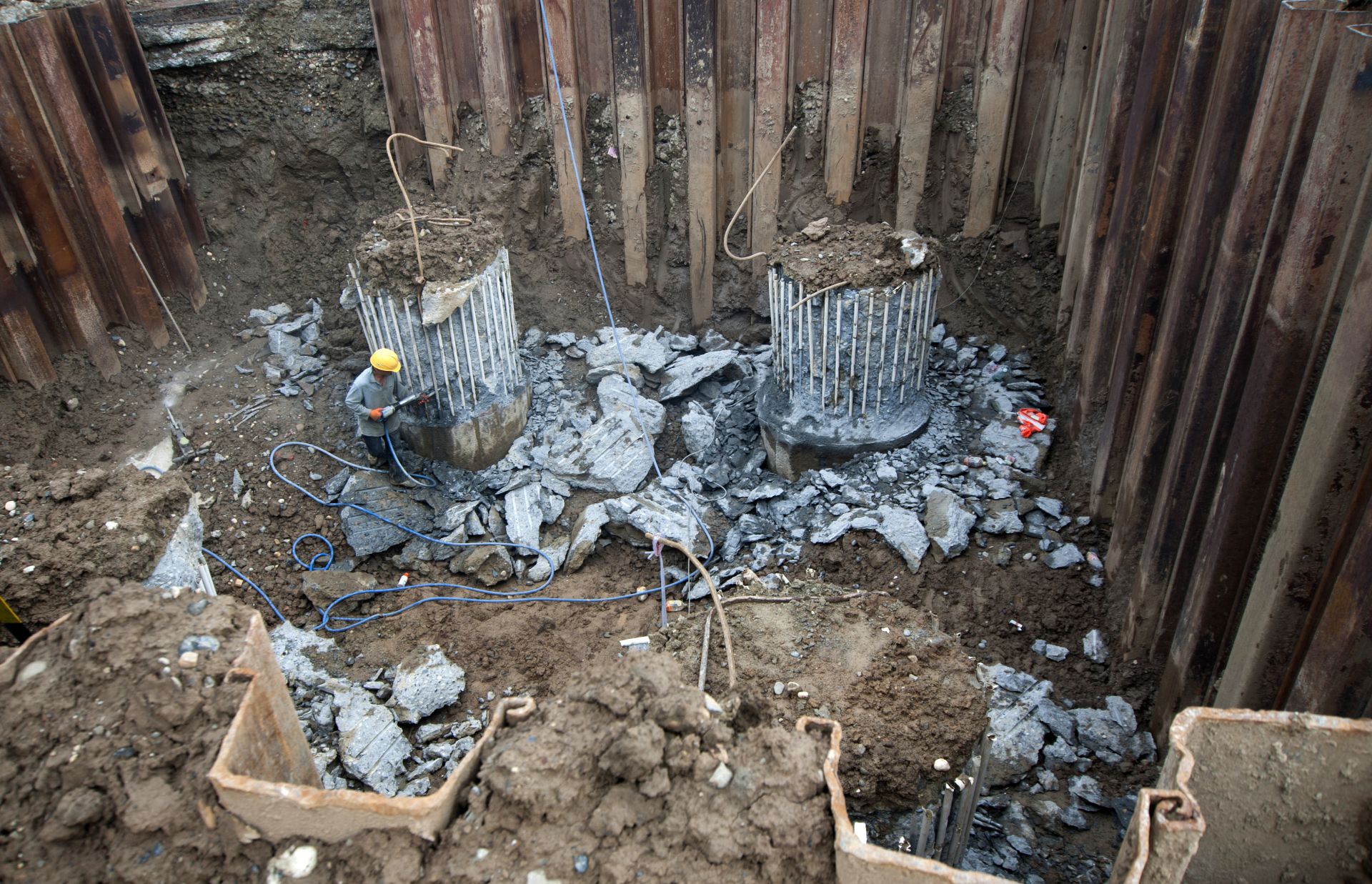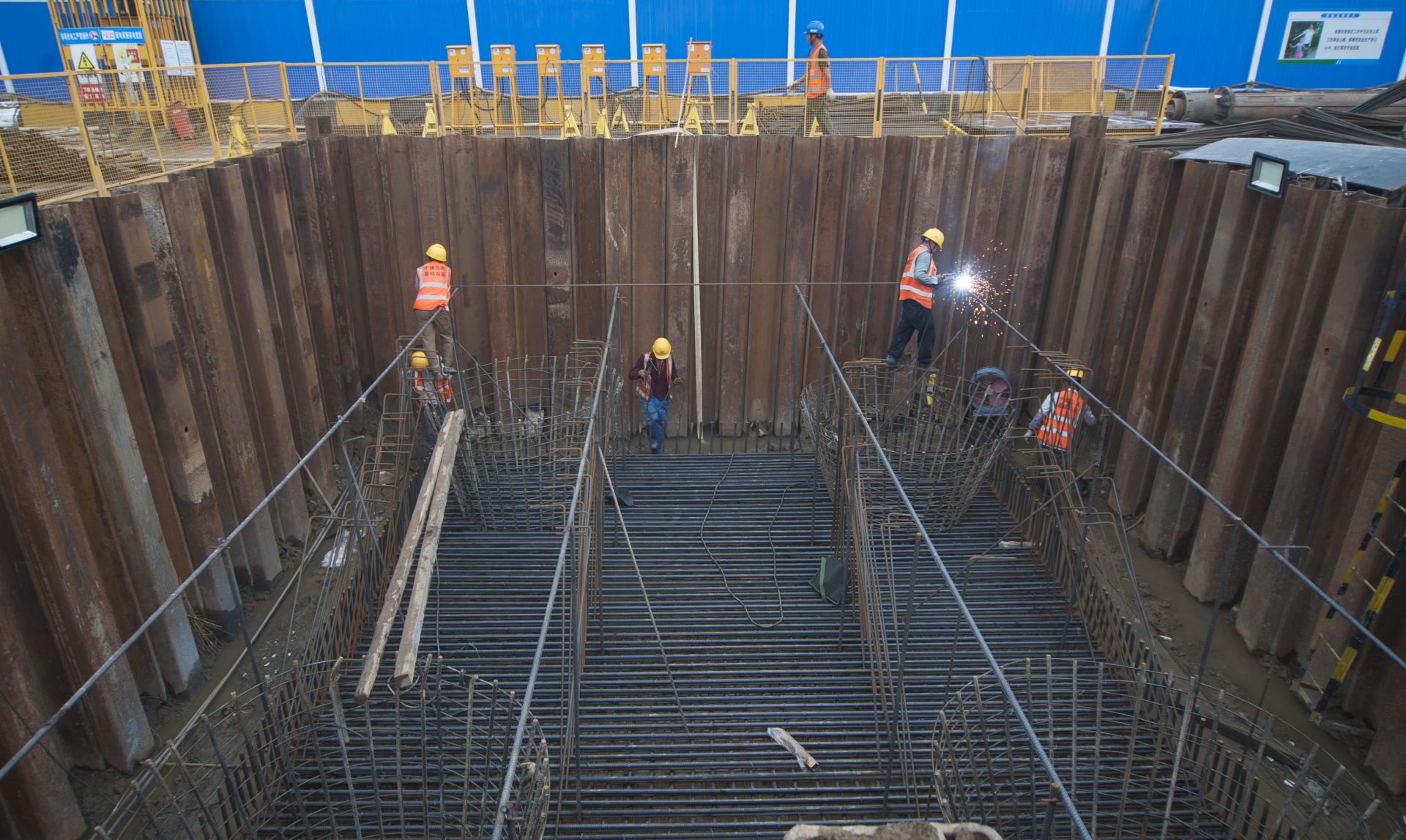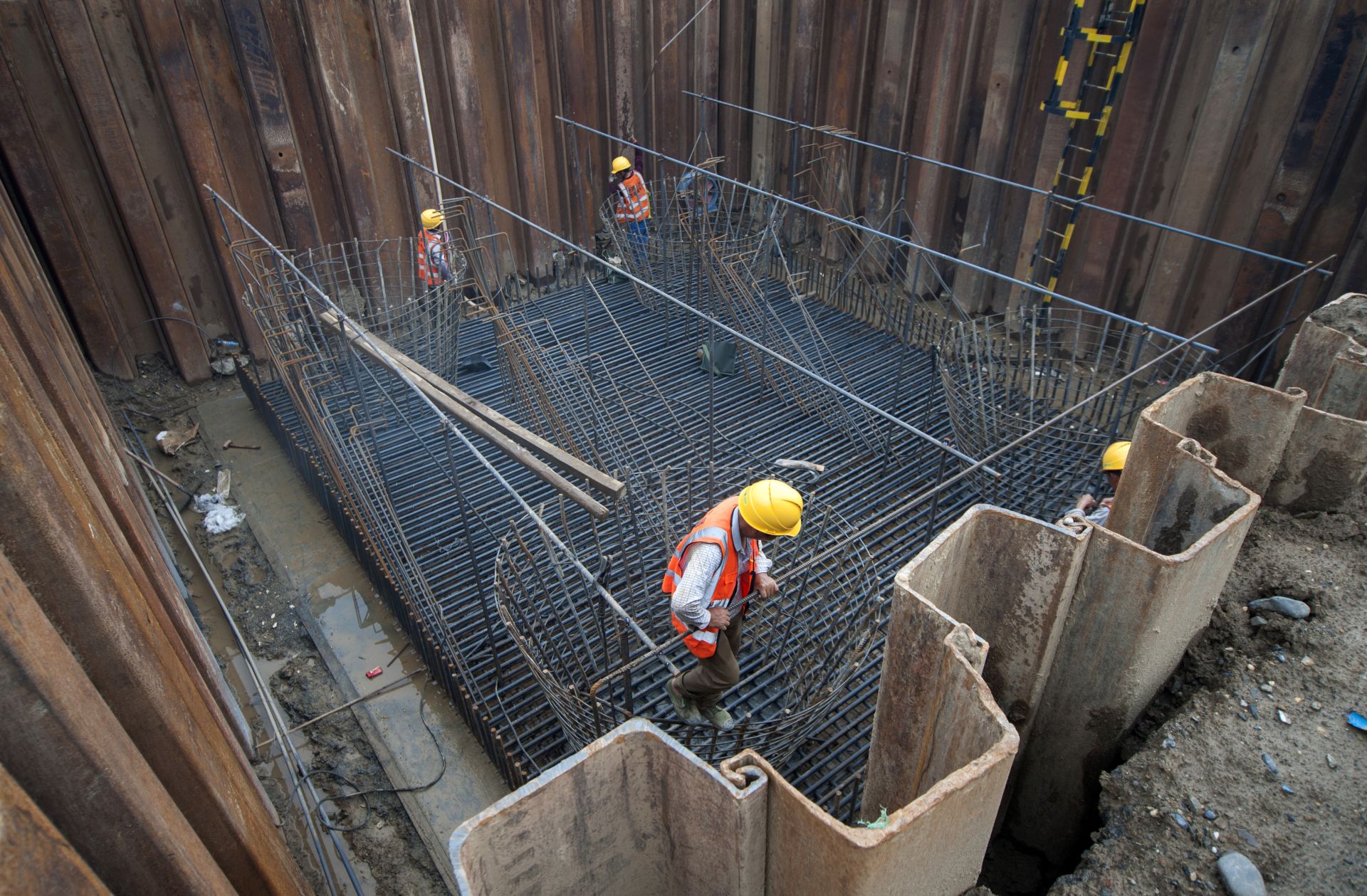 2018年8月9日,襄阳市东西轴线建设施工工地的建设者冒着酷暑施工。