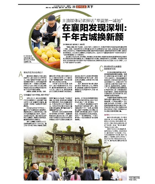 “庆祝改革开放40周年襄(阳)深(圳)全媒体联合行动”第一阶段“在襄阳发现深圳”完美收官。8月15日,《深圳晚报》整版推介襄阳。