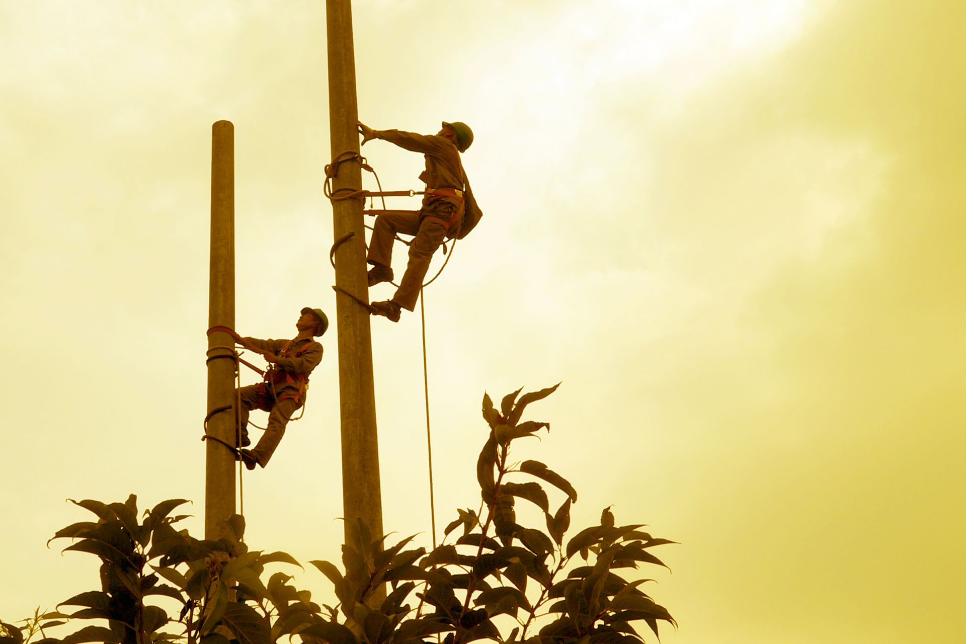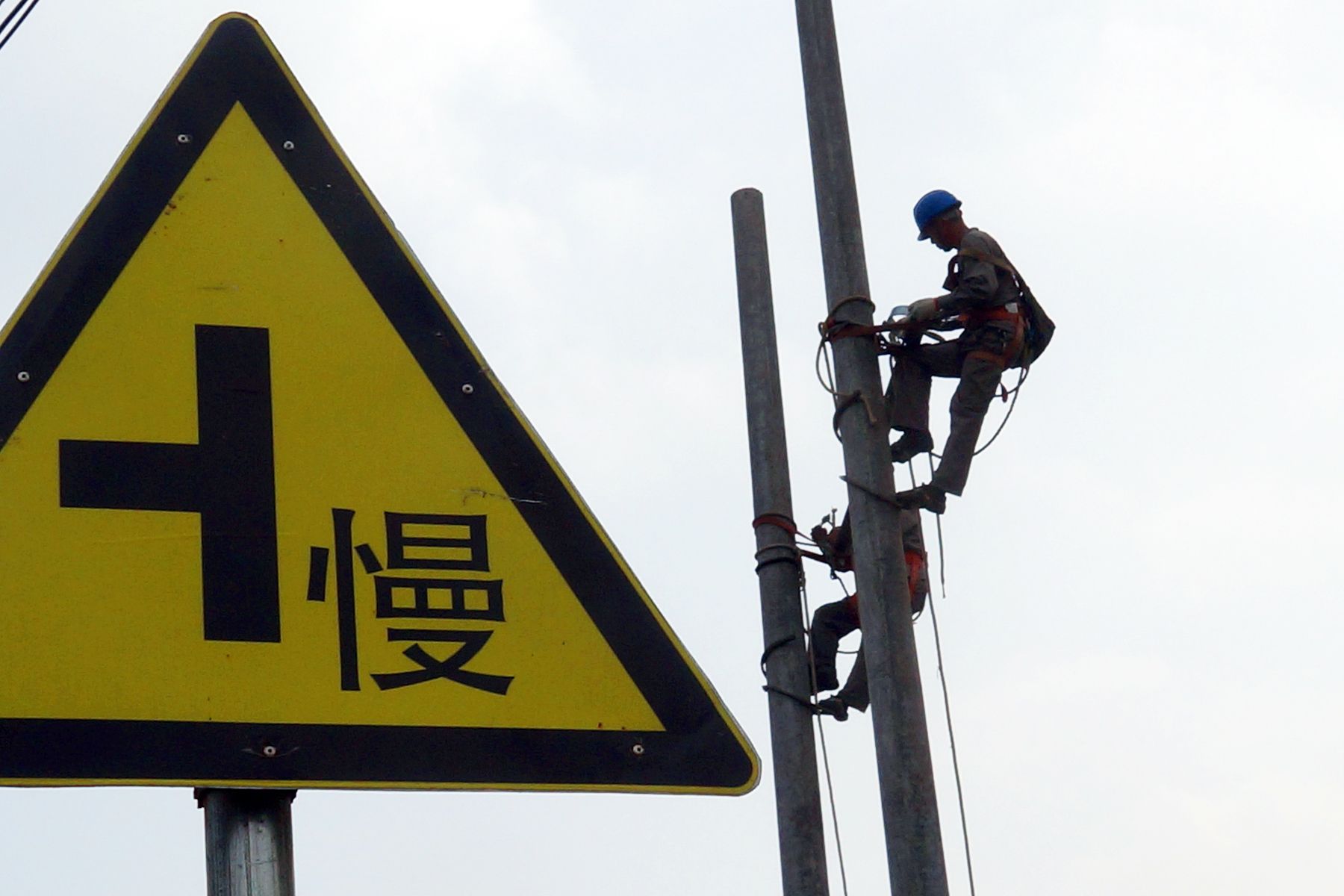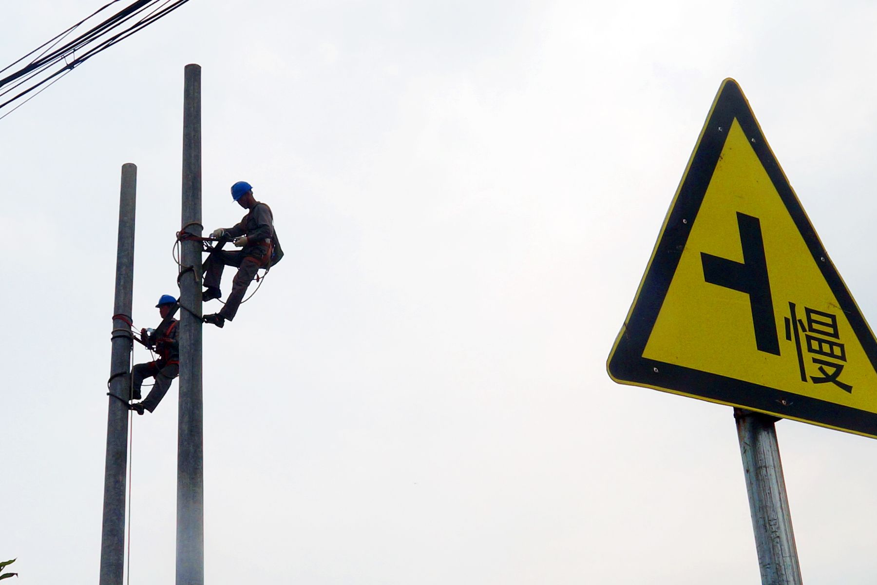8月15日,在老河口市张集镇蒋湾村,来自国网老河口市供电公司的施工人员正在10千伏岗张联线蒋湾7号台区支线1至2号杆安装金具,为新架变压器做好准备。迎峰度夏期间,该公司合理安排施工时间,错开高温时段,避免因抢进度而带来的人身安全隐患,保障施工安全。