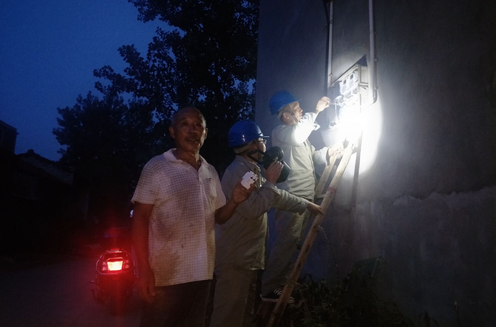 “村里机井排队抗旱,晚上11点轮到咱家40亩地,我在地头摊放排水管,没想到你们修电找到地里来啦!这服务真周到,走,回家拿我新买的开关。”8月15日19点43分,国网老河口市供电公司员工李永久、陈相亭在南刘岗6号台区涂开勤家快速更换故障开关,为客户抽水抗旱争取时间。