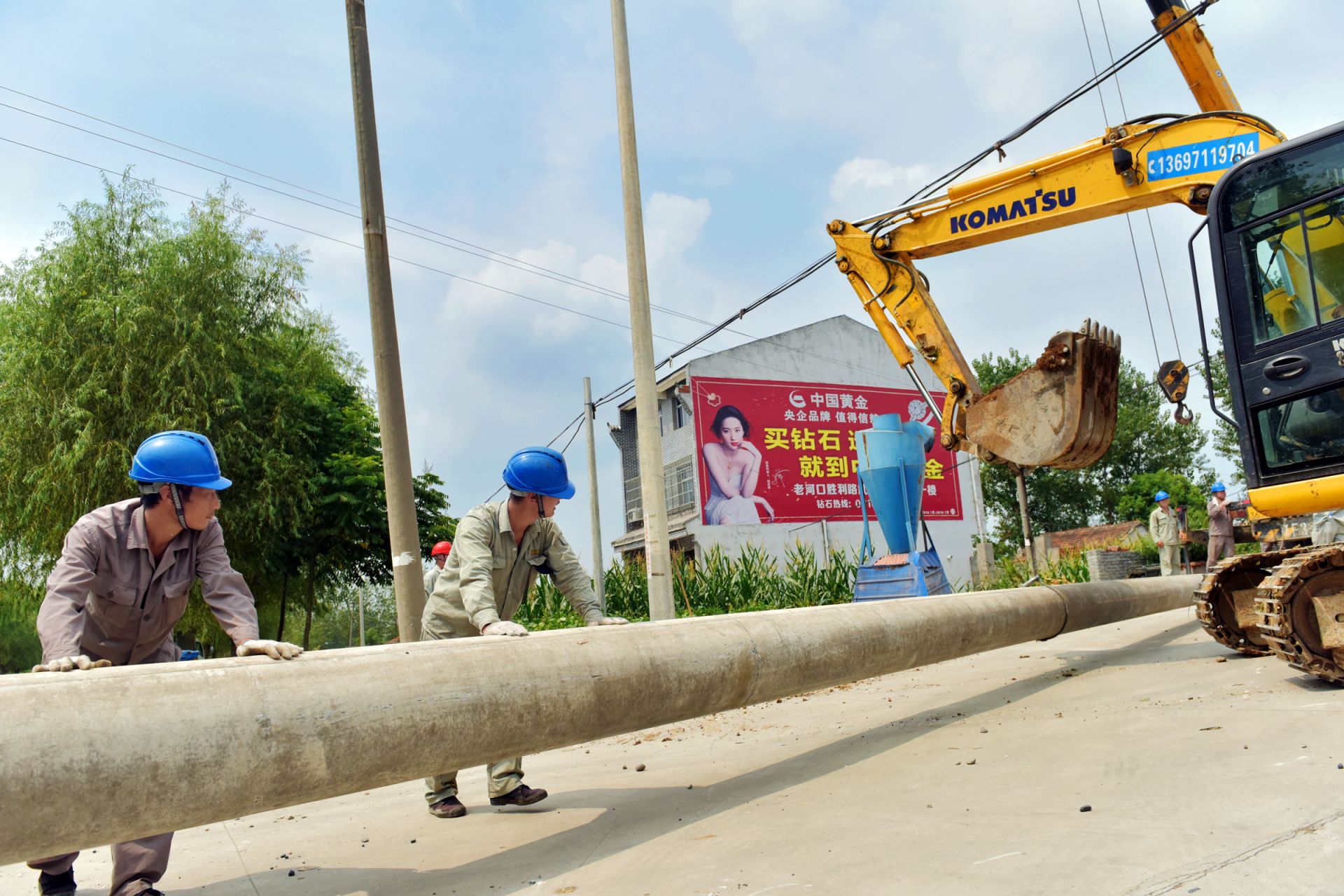 8月23日,湖北老河口市供电公司施工人员在竹林桥镇大堰村,对10千伏马湾线竹58线路大堰15号台区进行升级改造。眼下,地处鄂西北的老河口地区即将进入秋收季节,该公司加大农网改造力度,保障当地农村秋收期间可靠用电。图为施工人员在新立4号电杆。