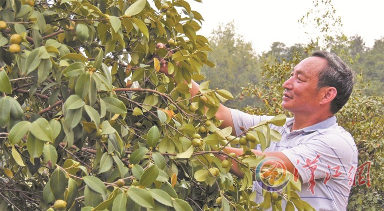 陈平山在油茶林里查看挂果情况