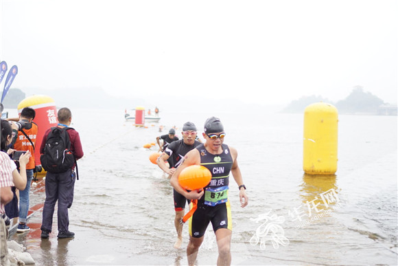 本次铁人三项赛吸引了900多位“铁人”征战。记者冉桐摄