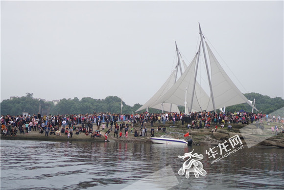 今日一大早,长寿湖铁人广场人上人海,许多市民和游客都在现场一睹“铁人”风采。