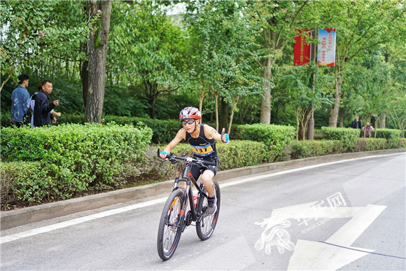 据了解,比赛全程组采用的是奥林匹克标准距离(51.5公里):游泳1.5公里,自行车40公里,长跑10公里。