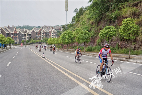 选手骑行在美丽的长寿湖赛道。记者冉桐摄