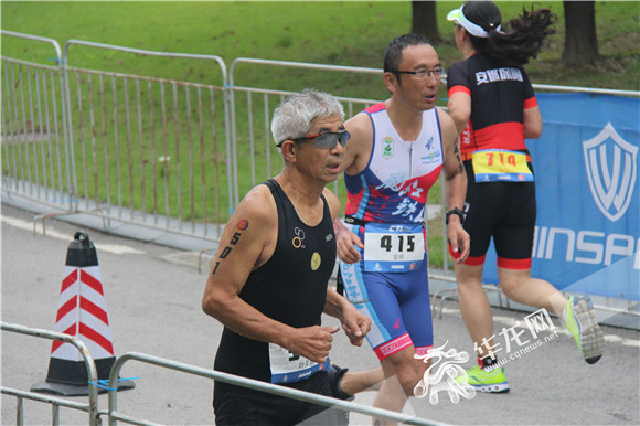 “今天的比赛很激烈,比分追得很紧。”今年25岁的魏臣已参加过几十场铁人三项赛,在上周刚刚征战完北戴河铁人三项赛后,又马不停蹄地赶到长寿湖参赛。他告诉记者,此次比赛最难的在自行车赛段,由于坡度较大,骑行起来比较费力。