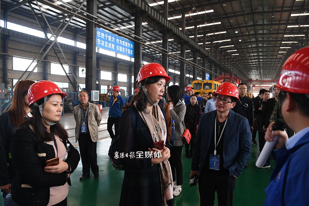 10月24日,出席2018中国城市新闻网站联盟总编辑联席会的代表到湖北时瑞达重型工程机械有限公司采访调研。全媒体记者丁涛李旭晖摄