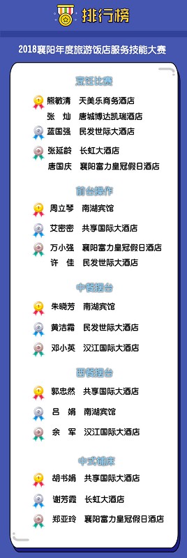 据了解,襄阳旅游产业品质提升系列评选活动自今年8月启动,以打造襄阳旅游行业品牌“第一方阵”为目标,表彰先进、树立典型,形成全行业“学先进,赶先进”的良好风尚。各旅行社、旅游景区、旅游饭店以及各行业协会积极响应,全市广大旅游从业人员热情参与,共有68家企业、800余名选手参加,历时4个多月,集中展示了襄阳厚重的历史文化底蕴和优美的山水风光。