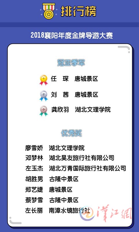 “这次我们评出了襄阳旅游行业带头企业和先进人物,特别是评出了襄阳十大金牌导游,他们就是襄阳旅游的代言人,是襄阳的旅游大使。”市旅游委主任孙峰12月12日表示,我们就是要通过举办襄阳旅游产业品质提升系列评选活动,以比代训,带动整个行业技能水平的提高。