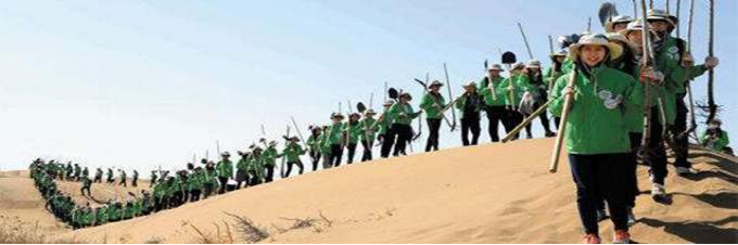 早餐后,前往沙漠深处,进行公益植树活动,这里曾经是沙尘暴的发源地,沙漠里只有两种天气,有风的日子和风停的时光,风沙一步步向四周吞噬仅剩的草场和农田,沙逼人退的悲剧千百年来一直在上演,我们在这里可以出一点绵薄之力,为我们的沙漠增添一抹绿色,为子子孙孙造福。