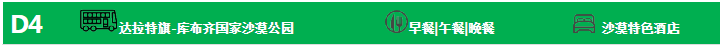 早餐后整装出发,前往【AAAA库布齐沙漠国家公园】,这里有七个美丽的湖泊与雄浑的沙漠景观完美交融,沙漠、草原、湿地、湖泊合为一体,在这里既可以领略“大漠孤烟直,神湖日月辉”的雄浑神韵,又可观赏“日出大漠红胜火,塞北金秋美如画”的风光,旅游区位于内蒙古自治区西南部,自然区属温带干旱、半干旱区,是国家重要的防风固沙基地。