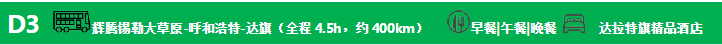 早餐后出发前往【辉腾锡勒大草原】,途中导游组织队员们开营破冰做自我介绍,沿途可以看到“但使龙城飞将在,不教胡马度阴山”中的阴山山脉,途中有专业蒙古史学老师随团,为大家讲述古老的蒙古往事,带大家走进那数百年前的蒙古帝国,一起欢声笑语中深入了解当地民风民俗。